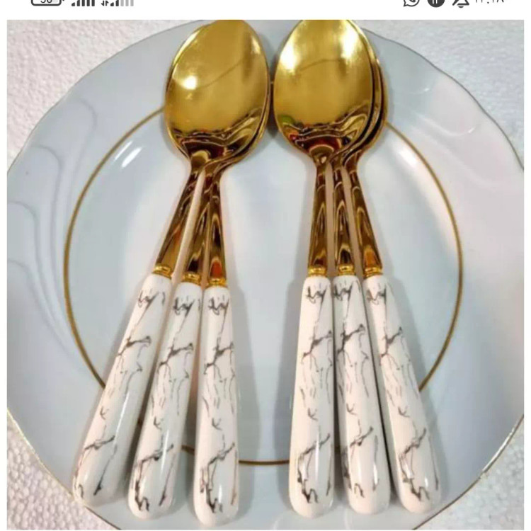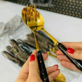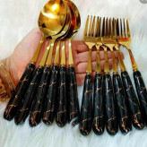 قاشق و چنگال غذاخوری دسته سرامیکی طرح ماربل رنگ طلایی مشکی قیمت درج شده برای ۱۲عدد میباشد