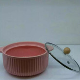 قابلمه یک لیتری سرامیکی درب پیرکس در رنگ صورتی موجود میباشد