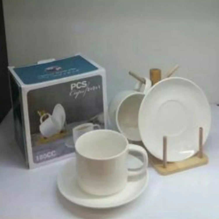 فنجان سرامیکی دوعدد فنجان دوعددزیر فنجانی با پایه چوب بامبو طرح ژاپنی