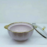 قابلمه یا کاسه سرامیکی دور طلایی شیک و فانتزی با درب پیرکس